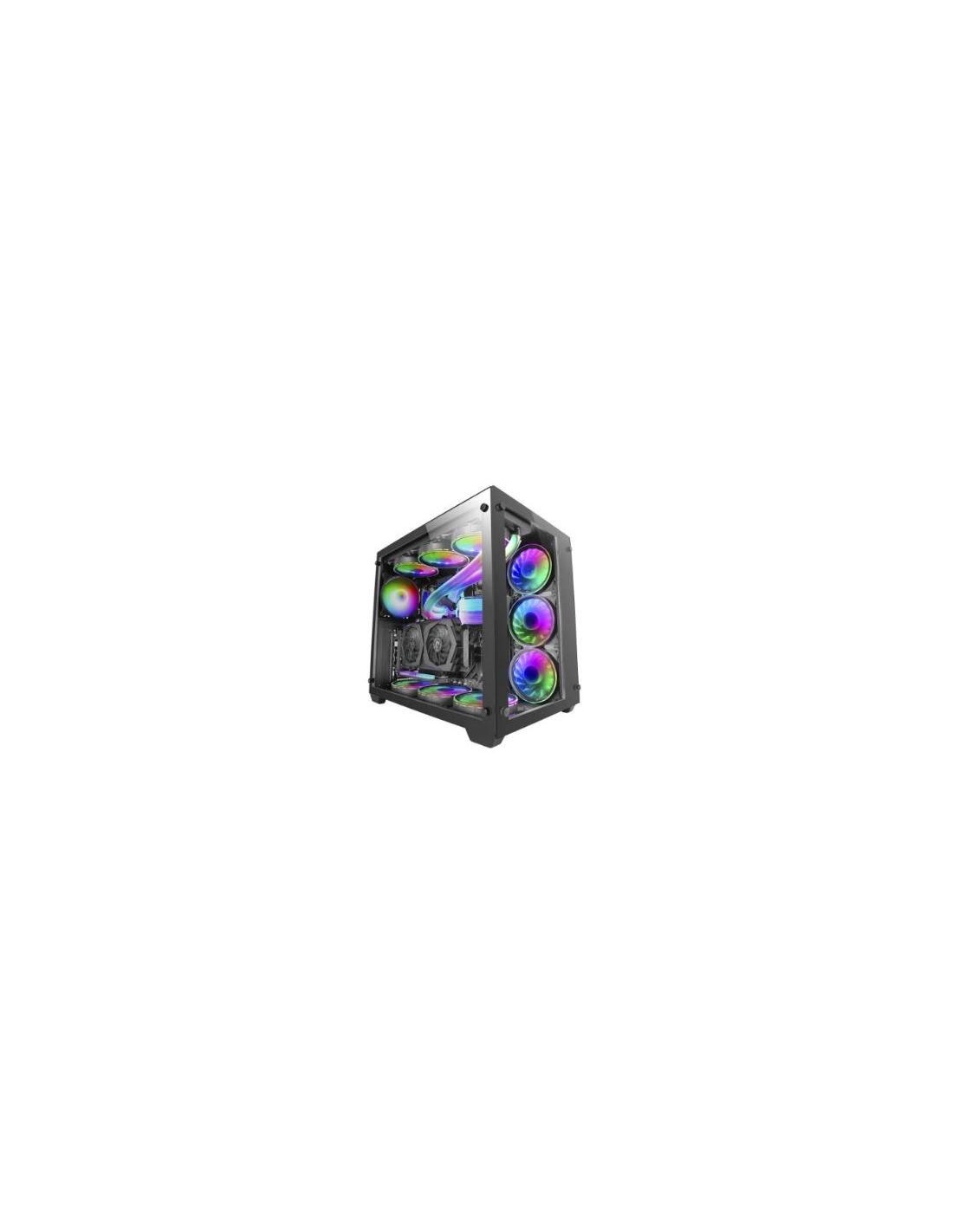 CAJAS CAJA MEDIATORRE ATX NOX... NOX 40010454 Mid Tower, ATX/MicroATX/ITX, 2x 8.89 cm (3.5) , 2x 6.35 cm (2.5) , 2x SB 3.0, 2x USB 2.0, 218 x 472 x 465 mm, 6.2 kg, Negro contribuyendo nuevamente a mejorar el flujo de aire en el interior del pc.- Panel lateral de cristal templado- Ventilador 120 mm RGB Rainbow pre-instalado- Bandas LED en el panel frontal- Filtro antipolvo magnético en el panel superior View