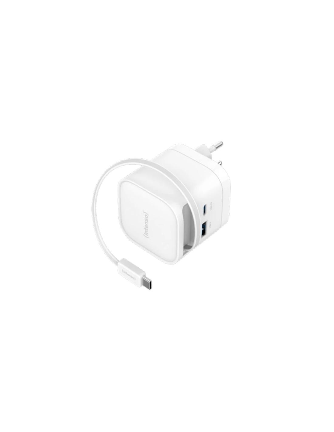 CARGADOR USB-C INTENSO W65ACIC 65W GAN USB USB-C WHITE + CABLE RETRACTIL USB-C