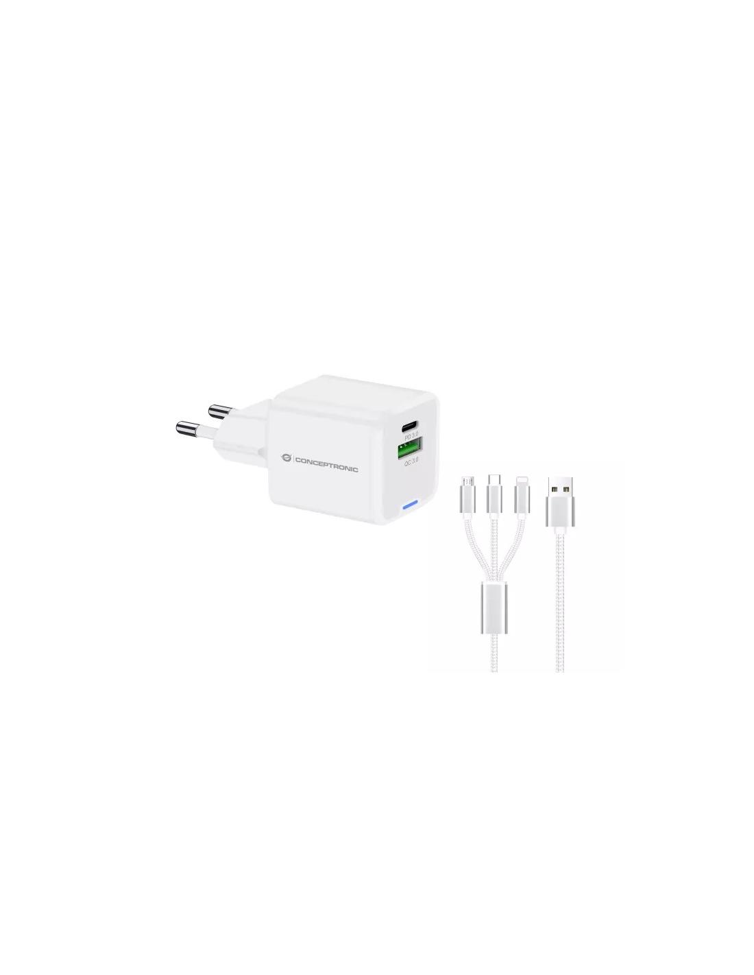 CARGADOR USB CONCEPTRONIC ALTHEA 33W USB-C + USB WHITE PARA CASA + CABLE 3 EN 1 USB-C / USB / LIGHTNING