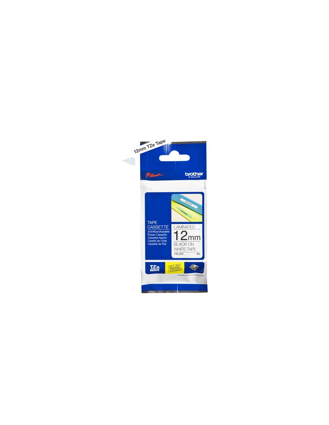 Brother TZe231 - Adhesivo - negro sobre blanco - rollo (1,2 cm x 8 m) 1 bobina(s) tipo laminado - para P-Touch PT-D200, D450, D800, E550, H110, P300, P750, P900, P950, P-Touch EDGE PT-P750