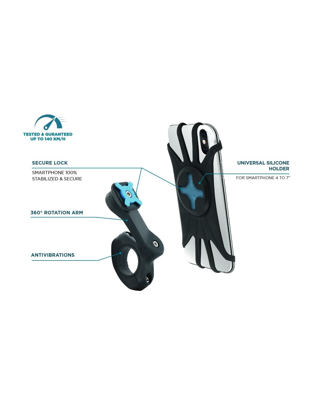 Tipología específica: Soporte smartphone para bici; Material: Plástico; Color primario: Negro; Color secundario: Negro; Tipo Conector 1: Ninguno; Dedicado: No; Peso: 106 gr
